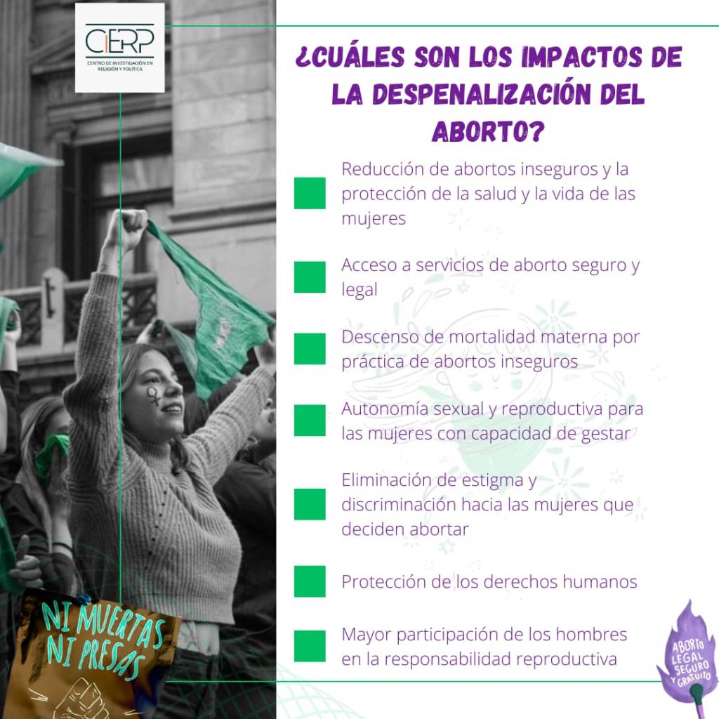 ¿Cuáles son algunos de los impactos positivos que tiene la despenalización del aborto? Ante esta pregunta, podríamos decir que tendría varios, como la reducción de abortos inseguros y la protección de la salud y la vida de las mujeres; lo que reduciría la mortalidad materna y mejorarían los derechos humanos de las personas con posibilidad de gestar, asegurando su derecho a decidir sobre su propio cuerpo, salud y vida. Además, permitiría una mayor autonomía sexual y reproductiva, reduciendo el estigma y la discriminación hacia las mujeres que deciden interrumpir su embarazo.