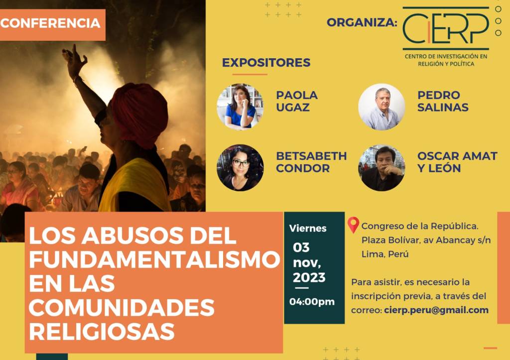 El viernes 03 de noviembre el CIERP en coordinación con el despacho de la congresista Susel Paredes, organizamos una conferencia en el Congreso de la República sobre el tema del Fundamentalismo y el abuso en las comunidades religiosas.