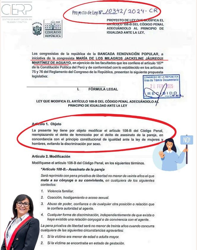 Congresista Milagros Jáuregui presenta el PL 10342 que modifica el artículo 108-B del código penal ¿principio de igualdad ante la ley? O más bien representa esto ¿un atentado contra los derechos de las mujeres?